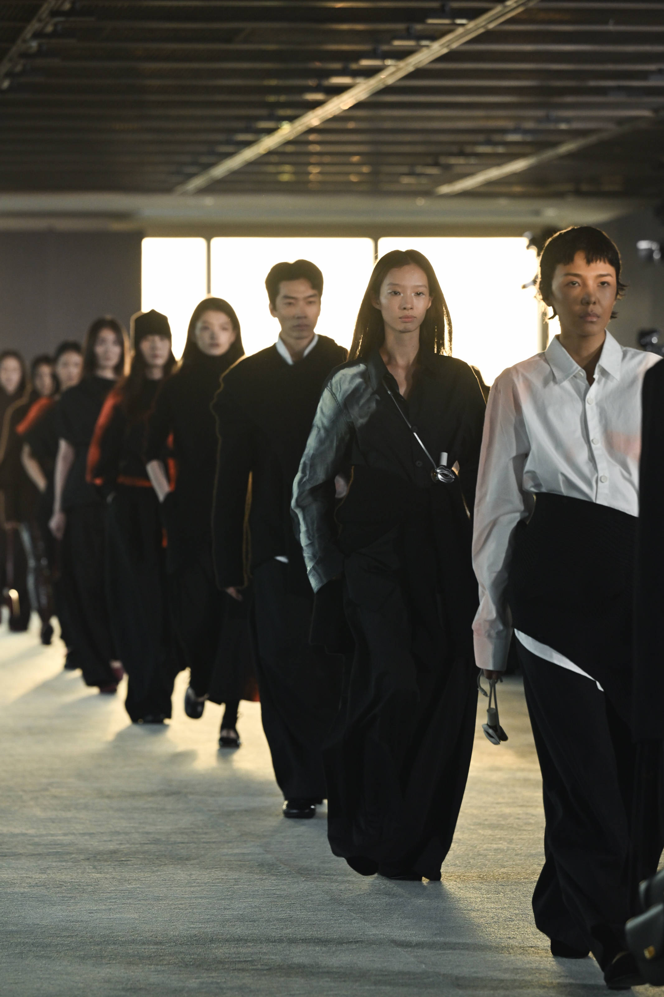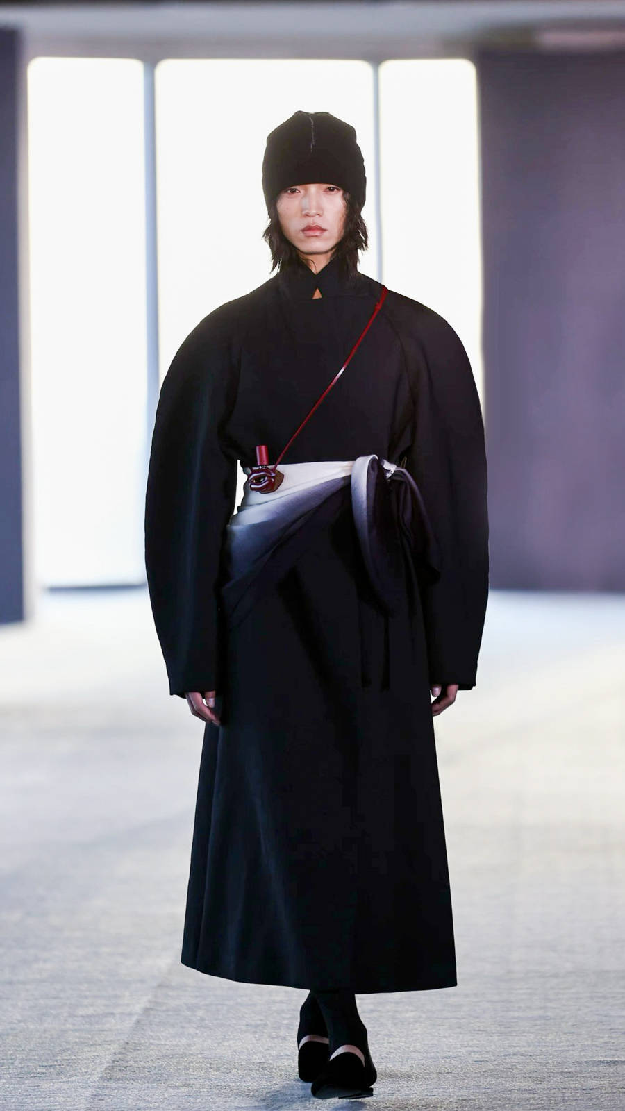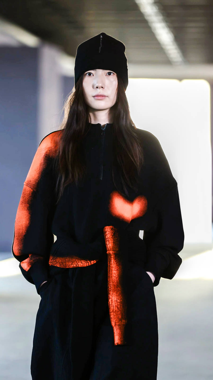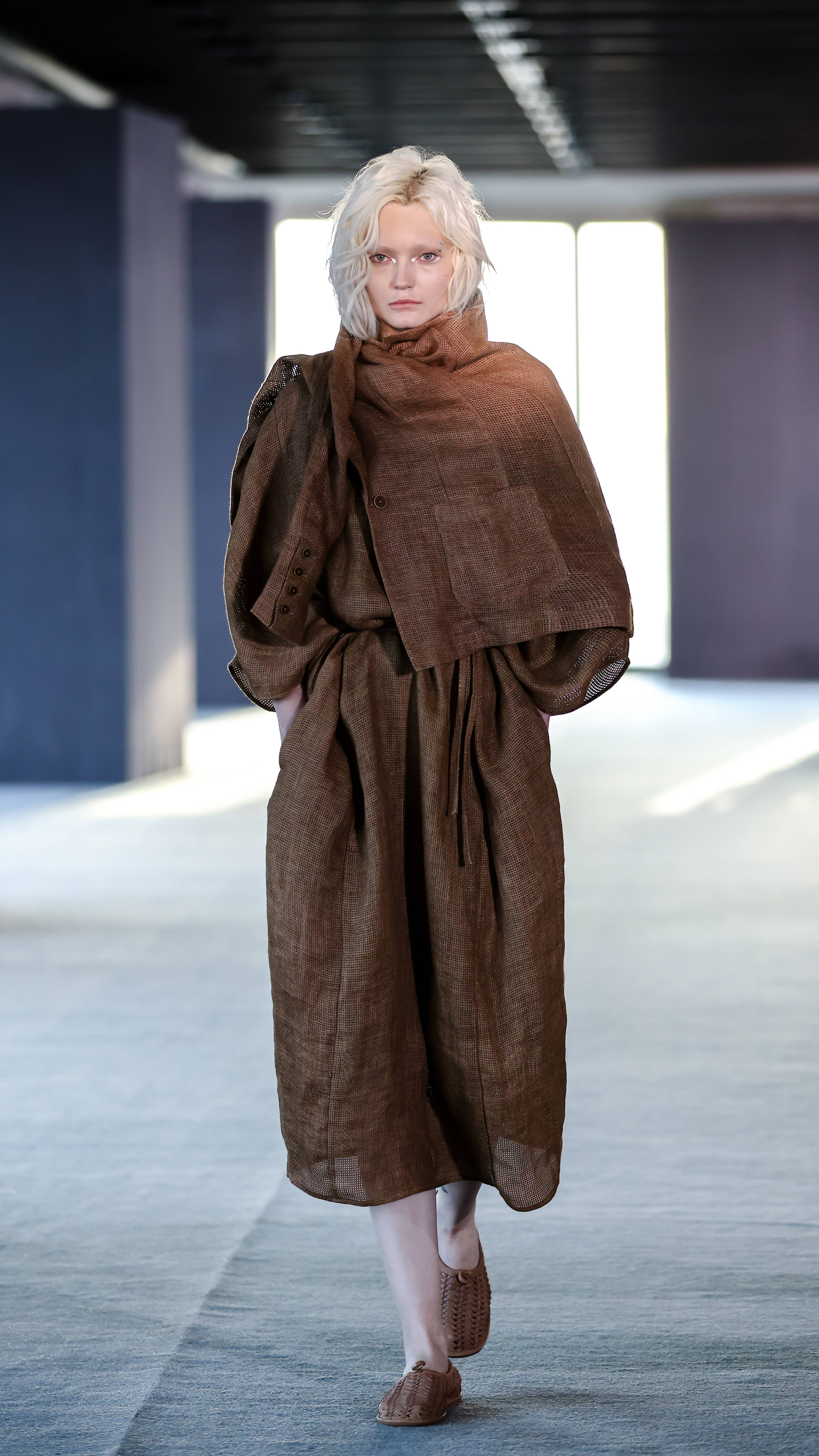 服装不仅是身体的遮蔽物,更是具有生命力、在空间中流动的立体廓形。它们随穿着者的姿态而变化,动态诠释“时间流逝”的概念。